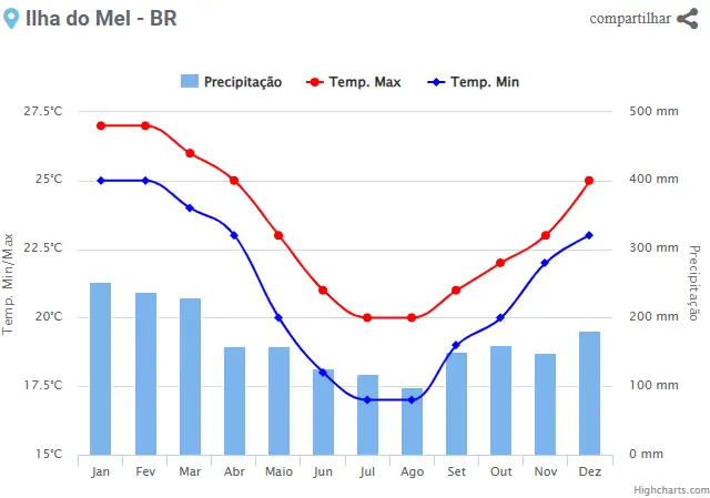 Alta temporada é entre dezembro e fevereiro, com maior movimento e preços mais altos. Julho também tem fluxo devido à pesca da tainha.