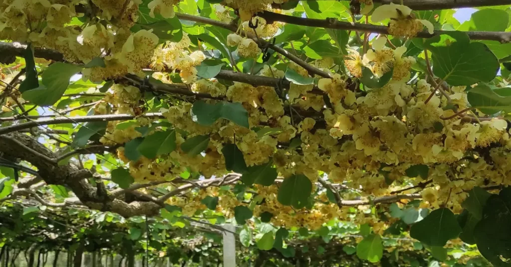 A florada do kiwi é única, as flores delicadas transformam o pomar em um teto branco-aveludado, atraindo abelhas nativas e criando um aroma suave que encanta visitantes e fotógrafos amadores.